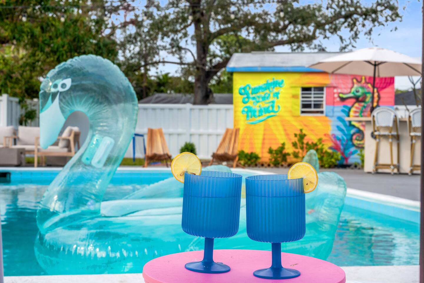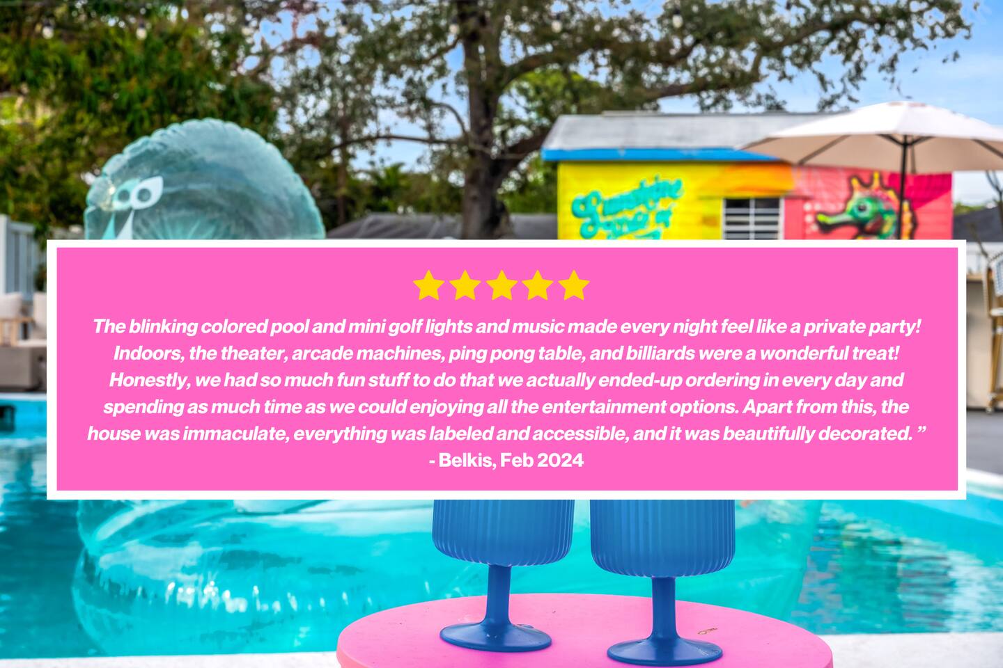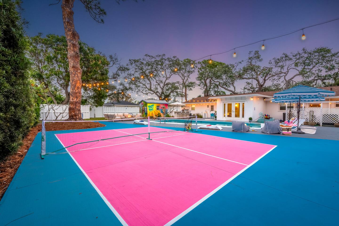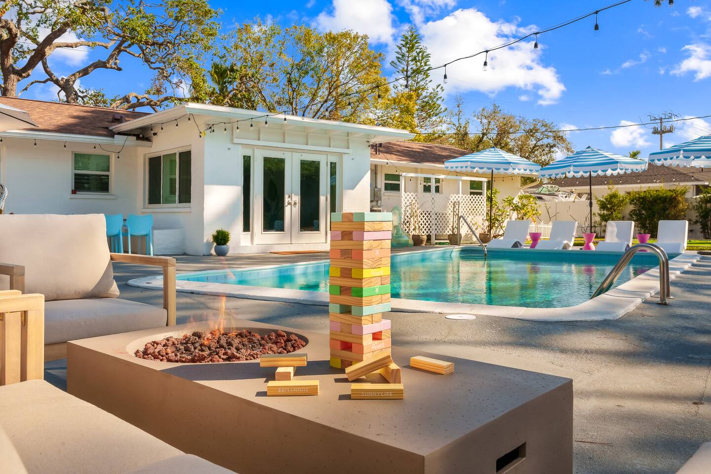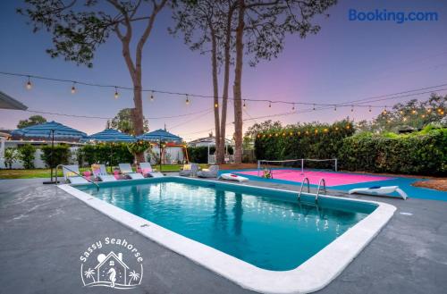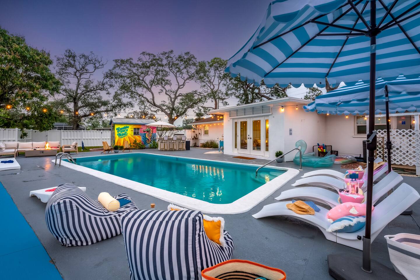 Welcome to Sassy Seahorse Bradenton – Your Ultimate Beachtown Getaway! We’re proud to be a Superhost with~200 five-start reviews! This is our newest listing, and we can’t wait for you to experience it. What our guests are saying: "With so many amenities there was a lot to do right at the house. The kids loved it and jumped from one activity to the next. We went to a variety of nearby beaches which were about 15 min drive. There was beach essentials to borrow in the shed which is so appreciated when traveling with kids. Host was proactive with communication and also very responsive when I reached out. You can tell they go above and beyond to ensure you have a great stay." - Jaclyn, Dec. 2025 **Prime Location** 📍 Quiet residential neighborhood near beaches, restaurants & shops 📍 7 miles/15 mins to Anna Maria Island Beaches & outdoor adventures (kayaking, biking, boating, swimming & beach horseback riding) 📍 5 miles/10 mins to IMG Academy for attending events, camps, or training 📍 Ample parking for up to 4 vehicles 🌊 Year-round Heated Pool with NO heating fee + Pool Basketball Hoop (pool size 16'x30', see below for pool temp details) 🏓 Pickleball Court: 18.25' x 28' – non-regulation but perfect for casual play ⛳️ Glow Mini Golf putting green 🎬 Outdoor Movie Nights: 150” screen, portable projector + Fire TV Stick for Netflix streaming 🎨 IG-Worthy Murals: Hand-painted by a talented local artist 🔥 BBQ with gas grill and Bluetooth sound system 🪑 Cozy Lounge: Plush sofa, gas firepit, outdoor dining, luxury loungers, umbrellas, bean bags, a Gazebo w/ Egg Chairs 🧒 Kids’ Swing Set: Hours of fun for little ones 🎲 Games Galore: Cornhole, mini soccer, jumbo Scrabble & beach themed Jenga 🏖 Beach Accessories: Towels, chairs, cooler & toys (Pool heat is maintained at 86°F but may vary and cannot be guaranteed if weather drops below 60°F.) **Indoor Fun & Entertainment** 🎥 Theater/Arcade Room: 8 electric recliners, 86” Smart TV & LG sound system, popcorn station, Simpsons arcade & 14 classic Pac-Man games 🏓 3-in-1 Game Table: Pool/Ping Pong/extra dining table 🛋 Living Room: 60” TV & ample plush seating 🍽 Spacious Dining: Seats 12, plus 4 high chairs at the kitchen island 👩🍳 Chef’s Kitchen: Fully equipped for all your cooking needs 💻 400+Mbps WiFI + Remote Workstations: 3 dedicated workspaces in separate bedrooms 🛏 Sleeps 12 | 4 Bedrooms + Bonus Room | 3 Bathrooms 🌟 Master: King bed (sleeps 2) 🌟 King + Twin: King & Twin bed (sleeps 3) 🌟 Blue Room: King bed (sleeps 2) 🌟 Bunk Room: Twin over Full (sleeps 3) 🌟 Bonus Room: Queen Murphy bed overlooking the swimming pool (sleeps 2) 🌟 Extra: Self-inflating Queen air mattress available upon request (sleeps 2) 🌟 Mattress topper on each King bed and a smart TV in every bedroom! 👶 Family-friendly: Pack 'N Play, booster highchair & children dinnerware 🐶 Dog-friendly: 2'x3' dog kennel, dog bowls & lawn area for dogs; see pet approval requirements below) 💼 Concierge Services To Elevate Your Stay 💆 In-Home Massage 👨🍳 Private Chef 🎉 Party Decor, Flower & Cake Delivery 🧘🏻♀️ Private Yoga 📸 Professional Photography Prioritizing Guest Safety, this home is equipped with smoke and carbon monoxide detectors, fire extinguishers, and pool door alarms to enhance child safety. ✨ Book Sassy Seahorse now for a luxurious Bradenton beachtown retreat! ⚠️ PLEASE NOTE 🕒 Instant Booking No reviews from other hosts yet? Please reach out to connect before booking. 📝 Rental Agreement, ID & Security Deposit Hold Within 2 days of bookings, we ask the booker to complete a rental agreement and ID verification for local compliance. Guests are required to either authorize a refundable temporary $500 security deposit hold (not a traditional security deposit, not an actual charge, released if no damage/excessive cleaning), OR opt in for a $45 non-refundable damage waiver provided by a third-party insurance company. The optional damage waiver is $45 for stays up to 10 nights, with an additional $2 per day for stays longer than 10 nights. To make this process easy for you, we use a secure and very simple, app-free platform called Happy Guest. It is not an app, and you do not have to sign up for an account -- it’s a safe and secure website. It also gives you a guest portal with all the info about the home and all of our favorite local spots. 🐾 Vacationing with Pets Pet fee of $200 for up to 2 house-trained dogs ages 2+. For stays of over 10 nights, additional pet cleaning fees may apply due to increased cleaning requirements. • Proof of rabies vaccination & flea/tick medications required for pet approval • No cats or other pets • Provided: kennel (24"x36"), bowls, mat **************** 🌲 LOCAL RESTAURANTS & ATTRACTIONS **Nearby Beaches** - Bradenton Beach - Coquina Beach - Holmes Beach - Anna Maria Island **Restaurants** - The Rooftop Bar & Grill (Downtown Bradenton) - Anna Maria Oyster Bar - Tides Tiki Bar & Grill - O'Bricks Pub & Martini Bar - Mattison's Riverwalk Grille Enjoy the best of both relaxation and adventure, all just a short distance from Sassy Seahorse!