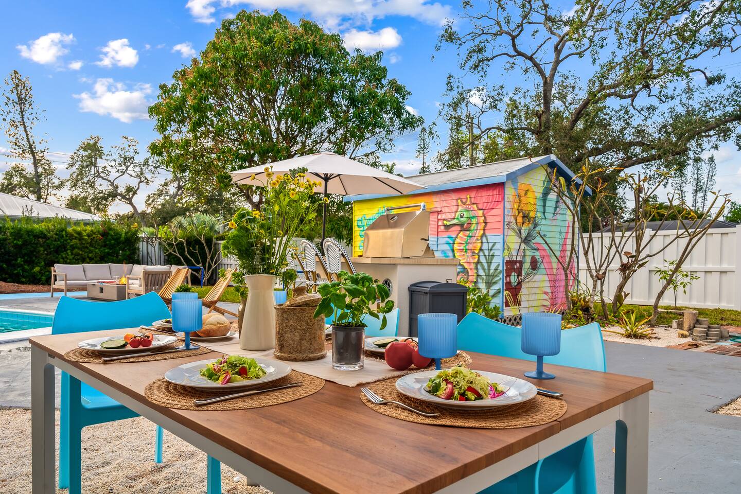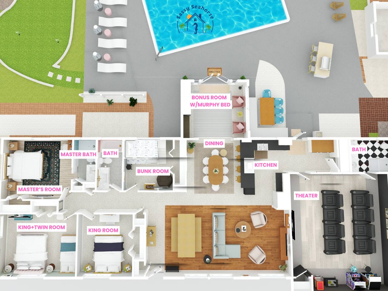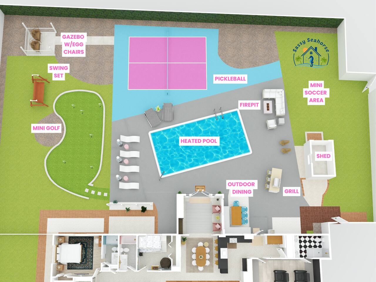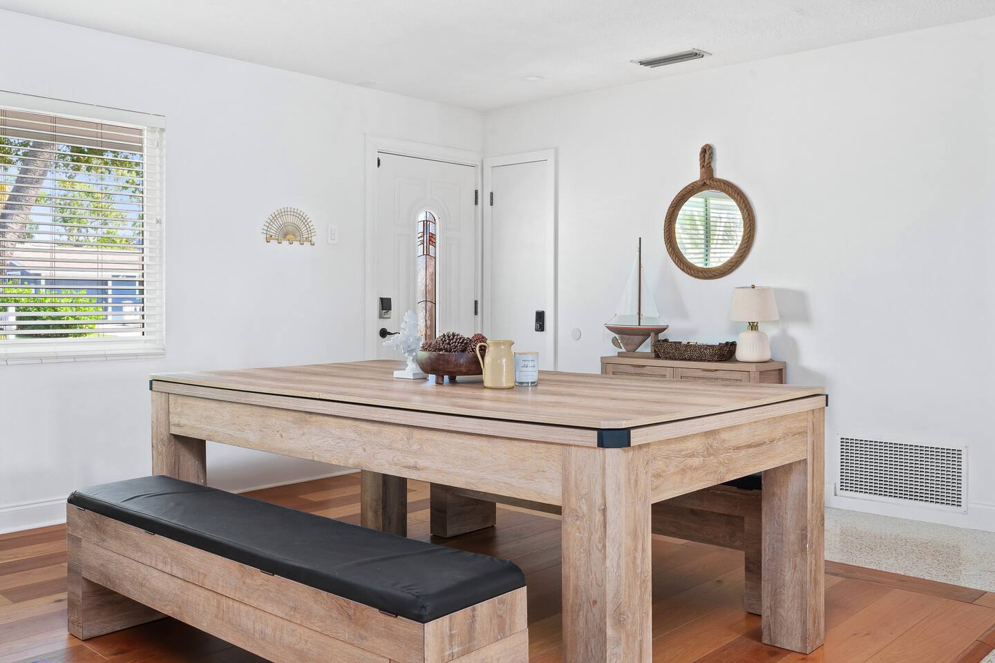 Welcome to Sassy Seahorse Bradenton – Your Ultimate Beachtown Getaway! We’re proud to be a Superhost with~200 five-start reviews! This is our newest listing, and we can’t wait for you to experience it. What our guests are saying: "With so many amenities there was a lot to do right at the house. The kids loved it and jumped from one activity to the next. We went to a variety of nearby beaches which were about 15 min drive. There was beach essentials to borrow in the shed which is so appreciated when traveling with kids. Host was proactive with communication and also very responsive when I reached out. You can tell they go above and beyond to ensure you have a great stay." - Jaclyn, Dec. 2025 **Prime Location** 📍 Quiet residential neighborhood near beaches, restaurants & shops 📍 7 miles/15 mins to Anna Maria Island Beaches & outdoor adventures (kayaking, biking, boating, swimming & beach horseback riding) 📍 5 miles/10 mins to IMG Academy for attending events, camps, or training 📍 Ample parking for up to 4 vehicles 🌊 Year-round Heated Pool with NO heating fee + Pool Basketball Hoop (pool size 16'x30', see below for pool temp details) 🏓 Pickleball Court: 18.25' x 28' – non-regulation but perfect for casual play ⛳️ Glow Mini Golf putting green 🎬 Outdoor Movie Nights: 150” screen, portable projector + Fire TV Stick for Netflix streaming 🎨 IG-Worthy Murals: Hand-painted by a talented local artist 🔥 BBQ with gas grill and Bluetooth sound system 🪑 Cozy Lounge: Plush sofa, gas firepit, outdoor dining, luxury loungers, umbrellas, bean bags, a Gazebo w/ Egg Chairs 🧒 Kids’ Swing Set: Hours of fun for little ones 🎲 Games Galore: Cornhole, mini soccer, jumbo Scrabble & beach themed Jenga 🏖 Beach Accessories: Towels, chairs, cooler & toys (Pool heat is maintained at 86°F but may vary and cannot be guaranteed if weather drops below 60°F.) **Indoor Fun & Entertainment** 🎥 Theater/Arcade Room: 8 electric recliners, 86” Smart TV & LG sound system, popcorn station, Simpsons arcade & 14 classic Pac-Man games 🏓 3-in-1 Game Table: Pool/Ping Pong/extra dining table 🛋 Living Room: 60” TV & ample plush seating 🍽 Spacious Dining: Seats 12, plus 4 high chairs at the kitchen island 👩🍳 Chef’s Kitchen: Fully equipped for all your cooking needs 💻 400+Mbps WiFI + Remote Workstations: 3 dedicated workspaces in separate bedrooms 🛏 Sleeps 12 | 4 Bedrooms + Bonus Room | 3 Bathrooms 🌟 Master: King bed (sleeps 2) 🌟 King + Twin: King & Twin bed (sleeps 3) 🌟 Blue Room: King bed (sleeps 2) 🌟 Bunk Room: Twin over Full (sleeps 3) 🌟 Bonus Room: Queen Murphy bed overlooking the swimming pool (sleeps 2) 🌟 Extra: Self-inflating Queen air mattress available upon request (sleeps 2) 🌟 Mattress topper on each King bed and a smart TV in every bedroom! 👶 Family-friendly: Pack 'N Play, booster highchair & children dinnerware 🐶 Dog-friendly: 2'x3' dog kennel, dog bowls & lawn area for dogs; see pet approval requirements below) 💼 Concierge Services To Elevate Your Stay 💆 In-Home Massage 👨🍳 Private Chef 🎉 Party Decor, Flower & Cake Delivery 🧘🏻♀️ Private Yoga 📸 Professional Photography Prioritizing Guest Safety, this home is equipped with smoke and carbon monoxide detectors, fire extinguishers, and pool door alarms to enhance child safety. ✨ Book Sassy Seahorse now for a luxurious Bradenton beachtown retreat! ⚠️ PLEASE NOTE 🕒 Instant Booking No reviews from other hosts yet? Please reach out to connect before booking. 📝 Rental Agreement, ID & Security Deposit Hold Within 2 days of bookings, we ask the booker to complete a rental agreement and ID verification for local compliance. Guests are required to either authorize a refundable temporary $500 security deposit hold (not a traditional security deposit, not an actual charge, released if no damage/excessive cleaning), OR opt in for a $45 non-refundable damage waiver provided by a third-party insurance company. The optional damage waiver is $45 for stays up to 10 nights, with an additional $2 per day for stays longer than 10 nights. To make this process easy for you, we use a secure and very simple, app-free platform called Happy Guest. It is not an app, and you do not have to sign up for an account -- it’s a safe and secure website. It also gives you a guest portal with all the info about the home and all of our favorite local spots. 🐾 Vacationing with Pets Pet fee of $200 for up to 2 house-trained dogs ages 2+. For stays of over 10 nights, additional pet cleaning fees may apply due to increased cleaning requirements. • Proof of rabies vaccination & flea/tick medications required for pet approval • No cats or other pets • Provided: kennel (24"x36"), bowls, mat **************** 🌲 LOCAL RESTAURANTS & ATTRACTIONS **Nearby Beaches** - Bradenton Beach - Coquina Beach - Holmes Beach - Anna Maria Island **Restaurants** - The Rooftop Bar & Grill (Downtown Bradenton) - Anna Maria Oyster Bar - Tides Tiki Bar & Grill - O'Bricks Pub & Martini Bar - Mattison's Riverwalk Grille Enjoy the best of both relaxation and adventure, all just a short distance from Sassy Seahorse!
